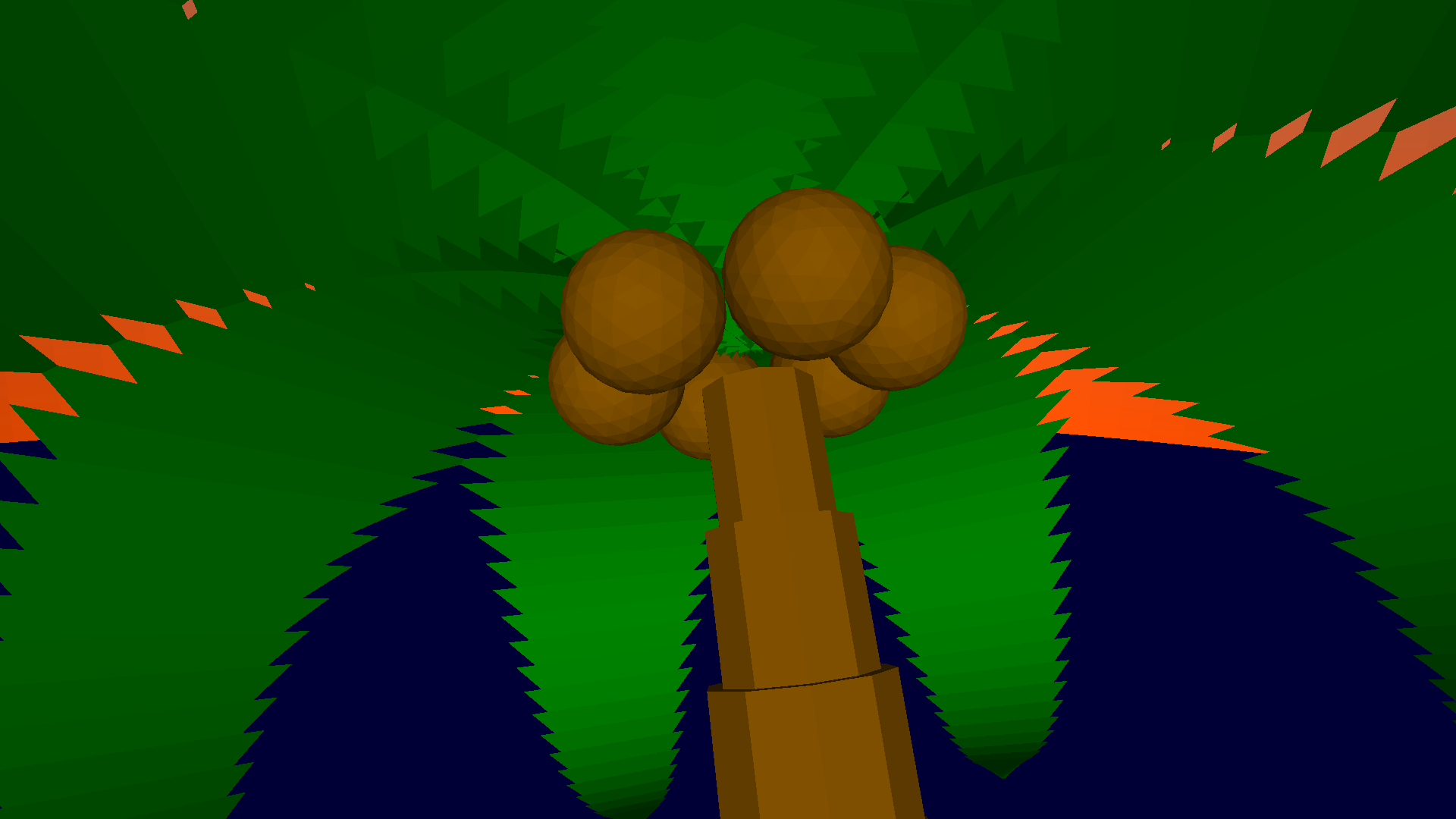 Let’s add six coconuts to the top of the tree using another repeat loop and icospheroids :