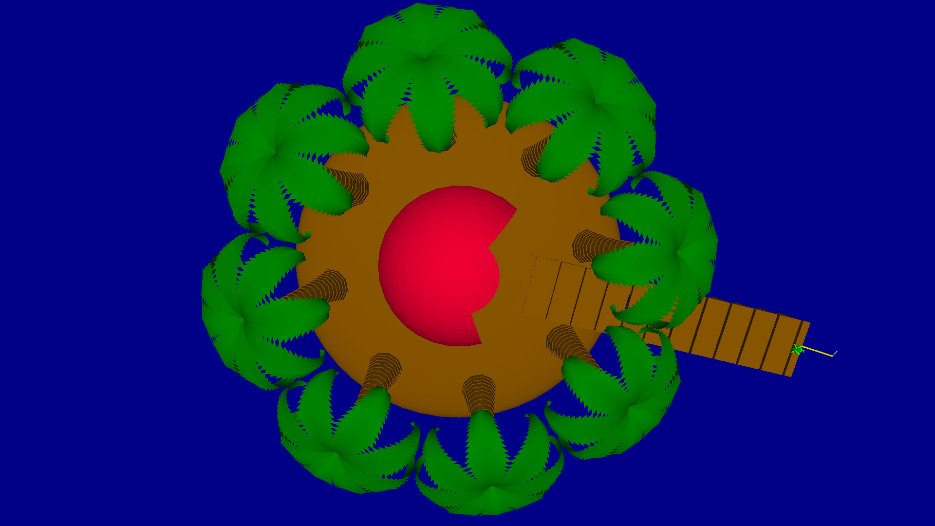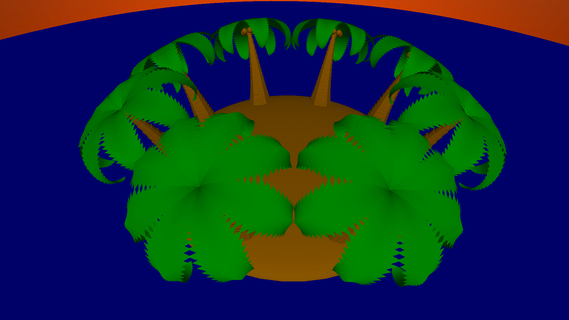 But one tree is kind of lonely, so let’s create a ring of eight around the edge of the island using the orbitleft primitive. We can also make the island more mound-like using a domoid :