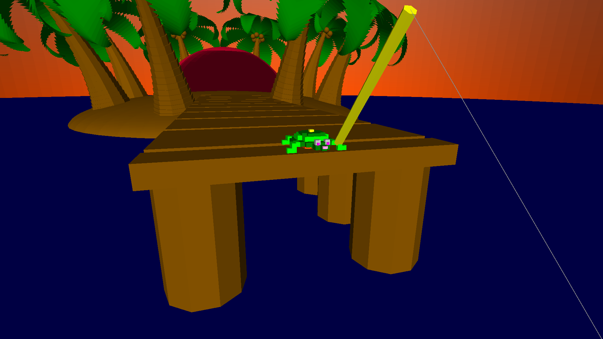Let’s add a dock Myrtle can fish off of made out of cylinders and voxeloids :