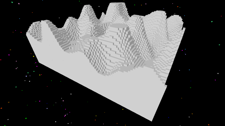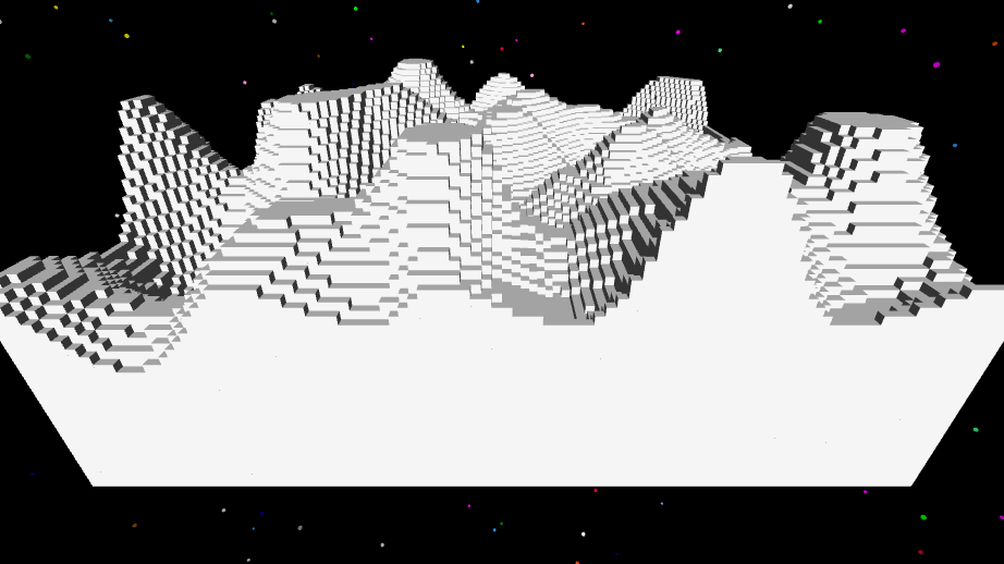 setterrain [-5 -5 5 5] [0 50 10 40] random 1000 [fbm 2] “voxel