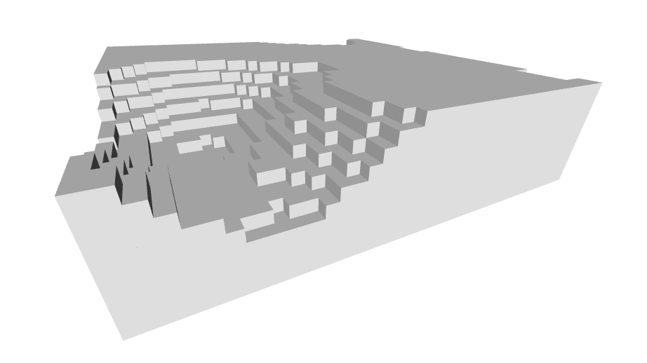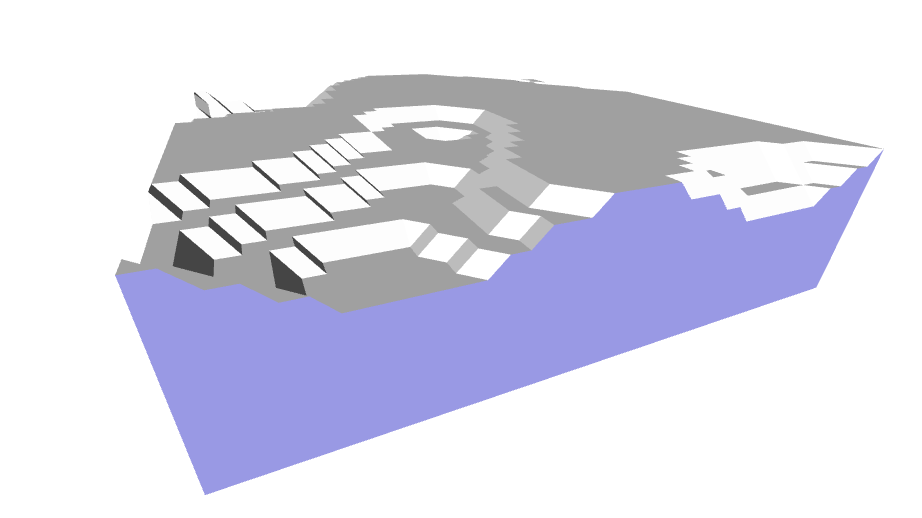Providing a list containing the algorithm type and a multiplier allow you to ‘zoom in’ or out on the terrain, making it more dense and complex, or spacious and simple. Multiple blocks of terrain can be defined so long as they do not overlap.