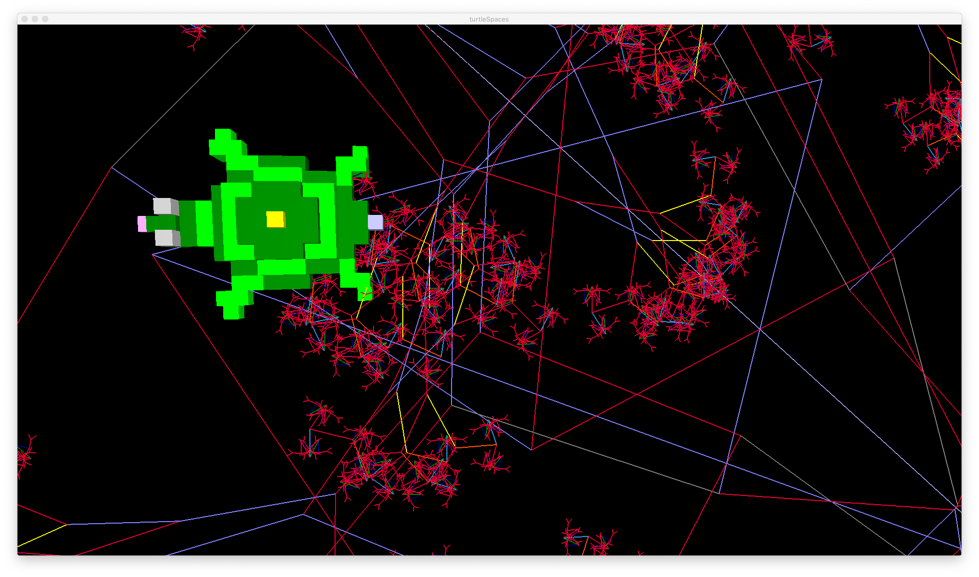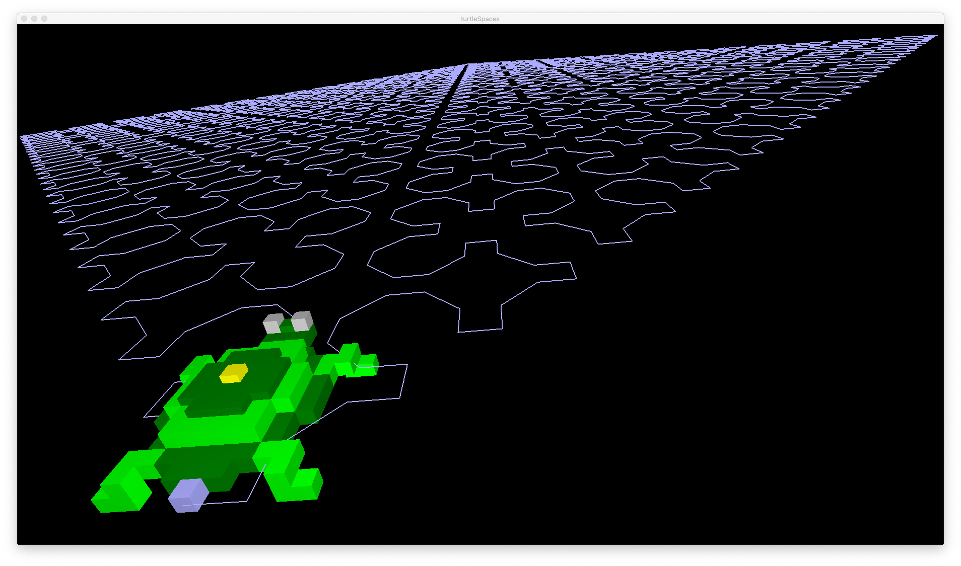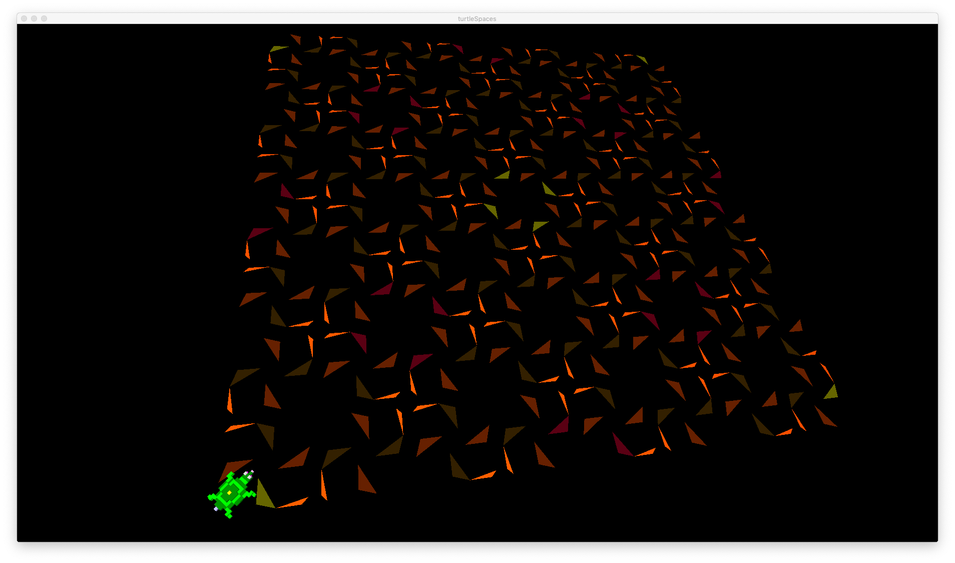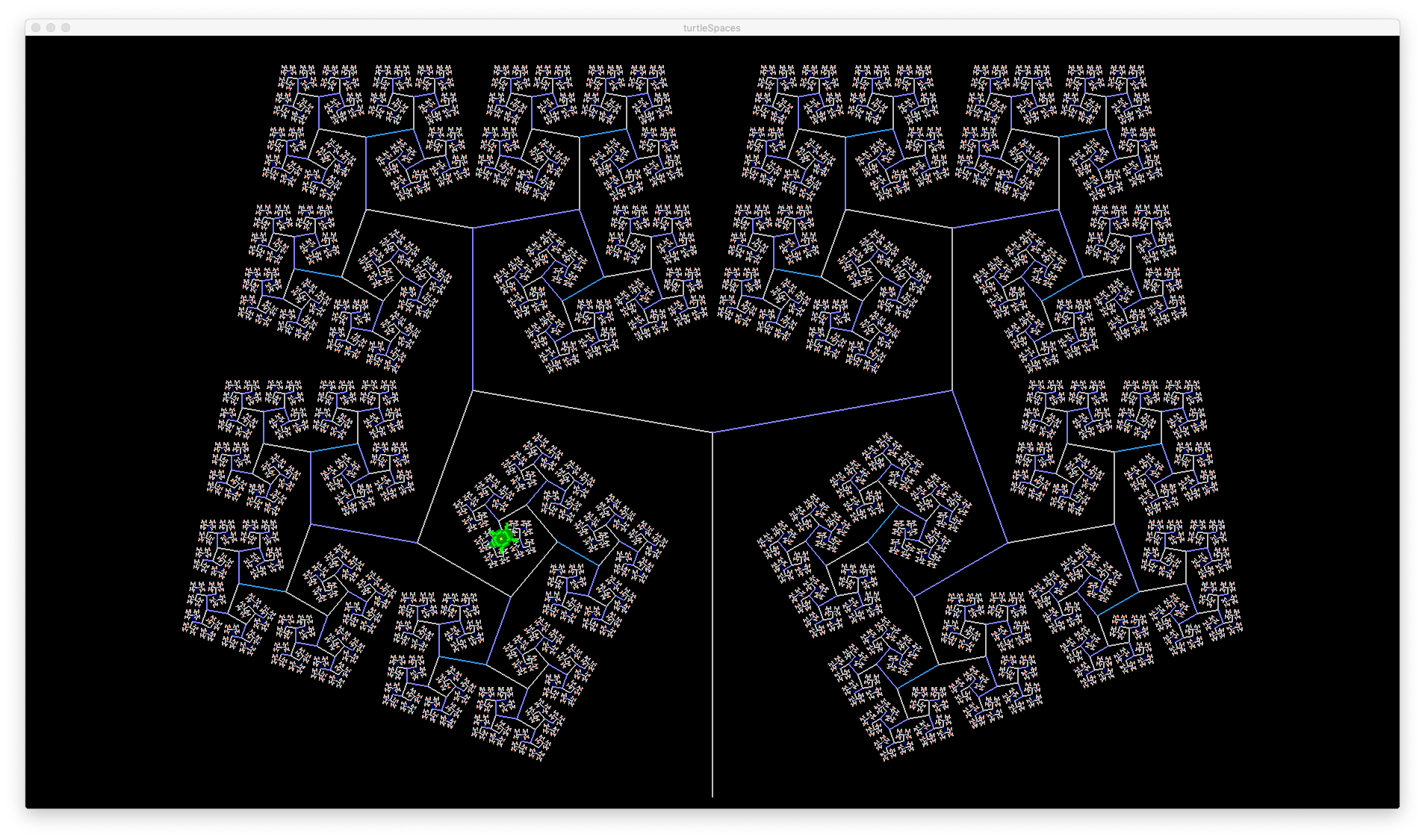 These routines use recursion (they repeatedly call themselves) to realise different Sierpinski algorithms. Logo’s recursion capabilities and relational turtle make it excellent for the task of rendering these algorithms! They’re also very pretty.