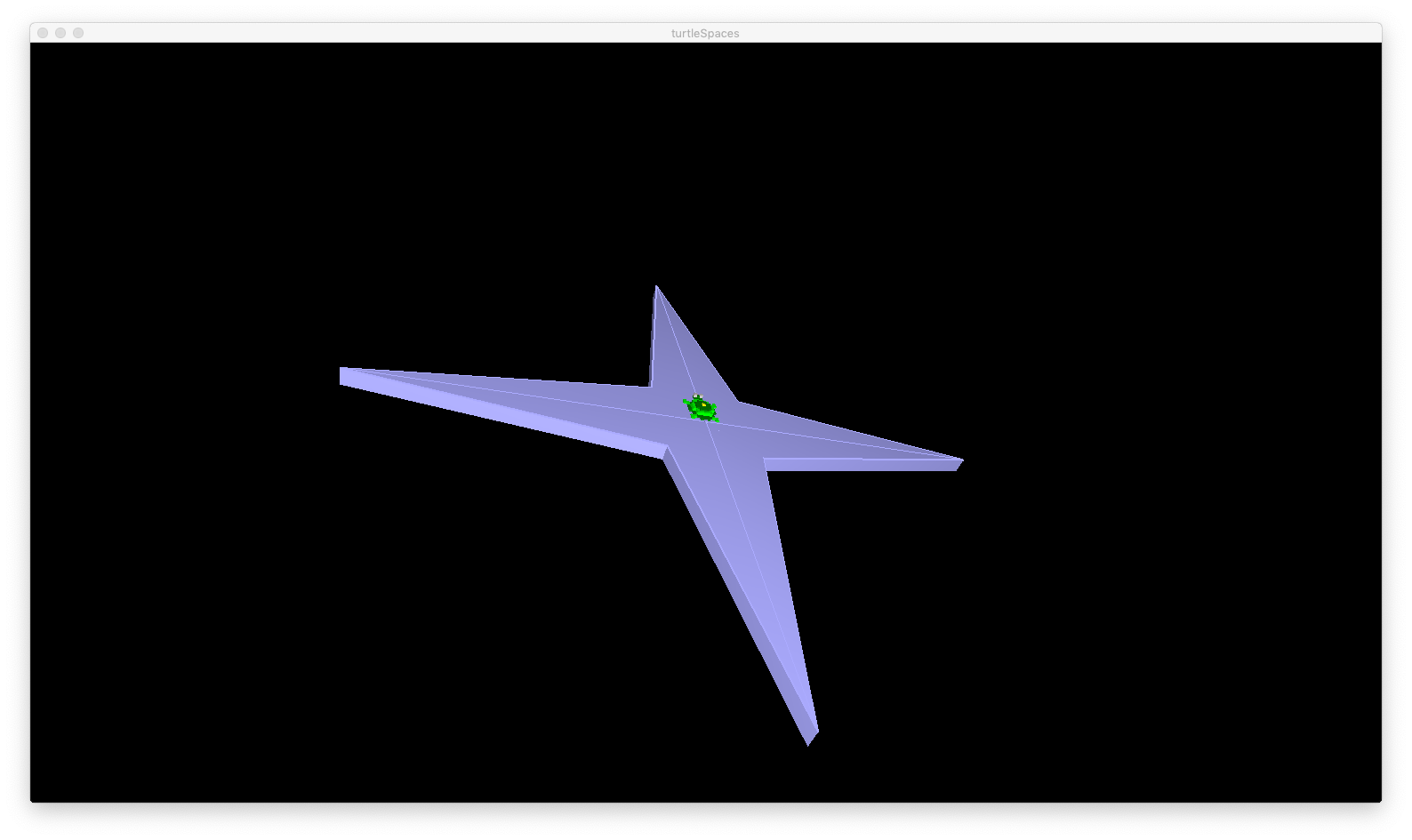 FRAG’s sister, SHARD creates a three-dimensional FRAG with depth beneath it. This depth is supplied as a parameter, in turtle-units, eg. SHARD 5. Try replacing FRAG with SHARD 5 in one of your star procedures and see what happens! (You’ll need to drag the camera around to see the sides of the star)
