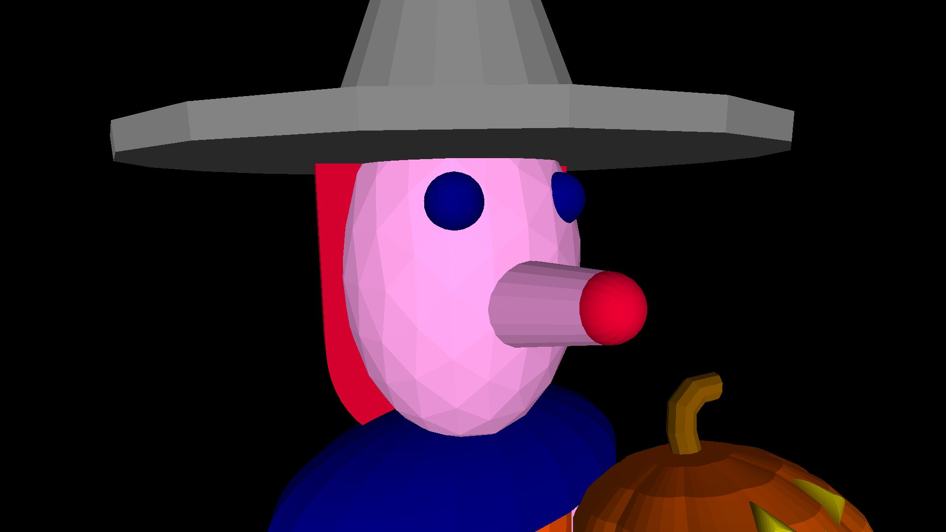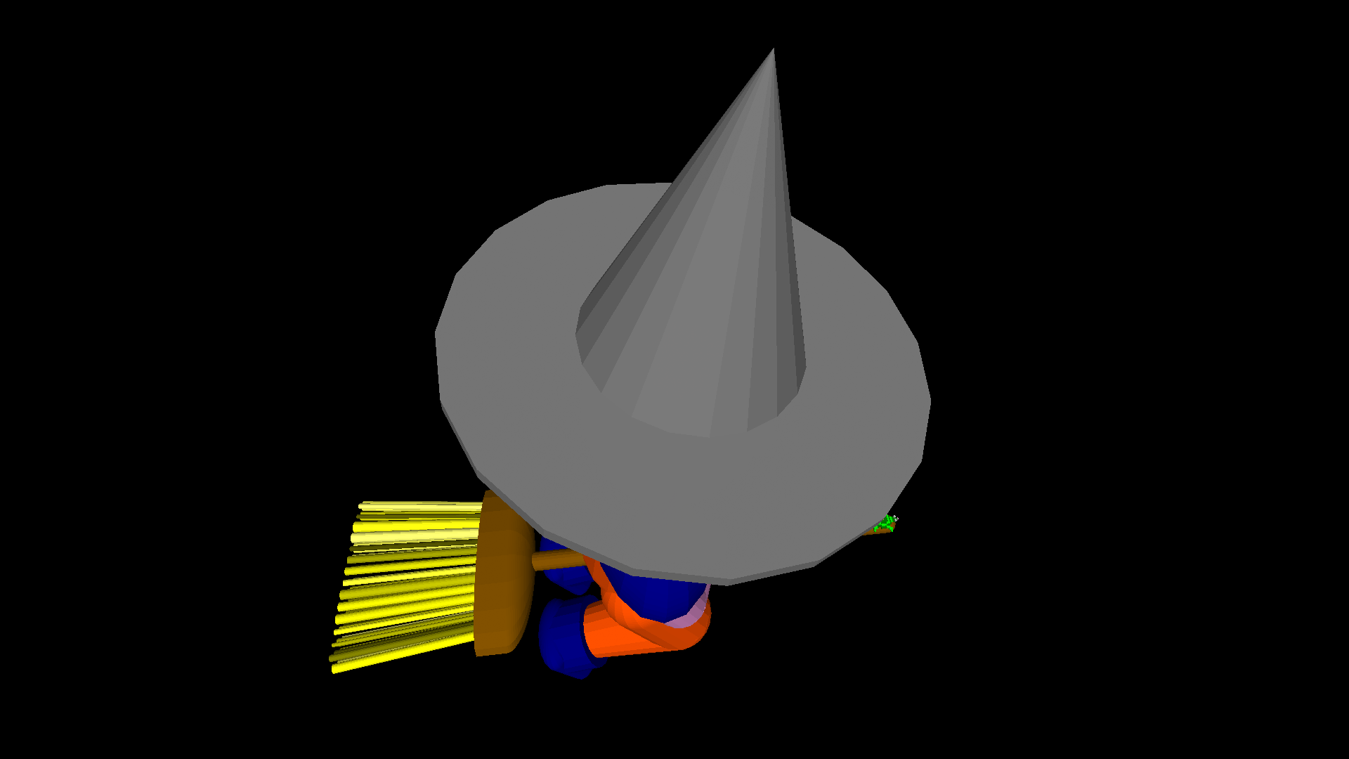 The witch procedure first stores the pumpkin as a turtle model, then begins with her signature feature: her hat!
